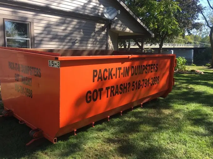 At Pack-It-In Dumpsters, we keep the rental process easy and stress-free. We bring the dumpster to your location and take it away when you are done. This lets you concentrate on your project. The 15-yard bin has a bigger size, offering plenty of room for heavy items like old furniture, roofing supplies, and yard waste.
